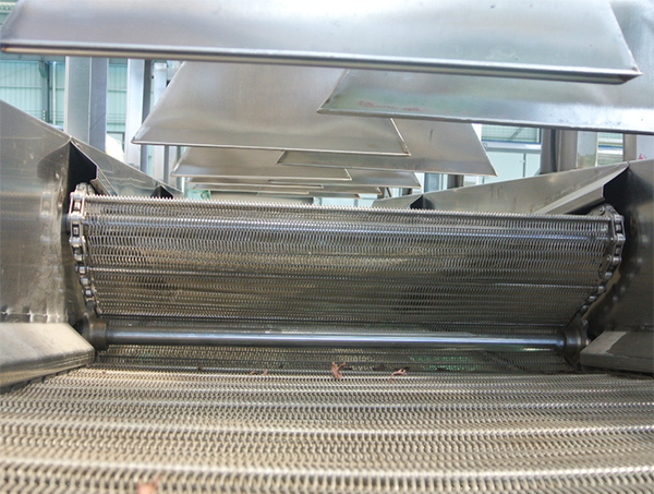 3、不銹鋼網(wǎng)罩:為防止產(chǎn)品過輕在風(fēng)干時(shí)被吹飛,在輸送帶上方都加有沖孔不銹鋼網(wǎng)罩,產(chǎn)品只會(huì)在里面翻轉(zhuǎn)而不會(huì)被吹出。防飛罩可以拆卸,方便清理。