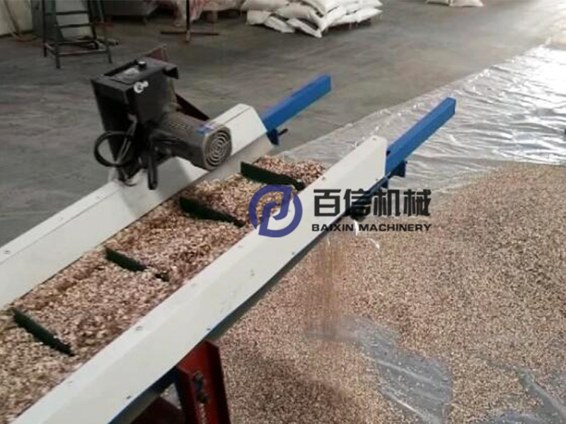 將需要干燥的物料放置在 輸送帶上,經(jīng)均料器后物料被平鋪在網(wǎng)帶上,輸送至烘干機內(nèi)部,在烘干機箱體內(nèi)呈“s"型逐層翻轉(zhuǎn)、下落,烘干后的水稻從出料口流出。熱風爐為干燥設(shè)備提供干燥介質(zhì)--熱風,按所用燃料不同可選擇熱泵、燃煤、燃油、燃氣等不同形式的爐子;網(wǎng)帶式烘干機是干燥設(shè)備的主體,由 機體和多層輸送帶組成;電控系統(tǒng)控制著整個設(shè)備的啟動、運轉(zhuǎn)與停止。在其他輔助部件的配合下,完成上料、干燥與出料等工序,實現(xiàn)被加工物料的干燥加 工。