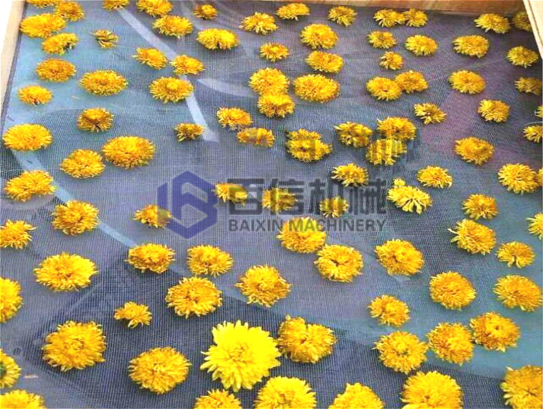 使用傳統(tǒng)加工工藝干燥菊花不僅費(fèi)時(shí)費(fèi)力,而且質(zhì)量達(dá)不到要求,不能保證花的顏色,后期保存也易生蟲(chóng),運(yùn)輸不當(dāng)易造成花朵破碎。百信大型網(wǎng)帶式菊花烘干機(jī)可滿足淮菊、雛菊、胎菊等多種菊花的烘干需求,生產(chǎn)批量大,干燥過(guò)的菊花品質(zhì),色澤較好。