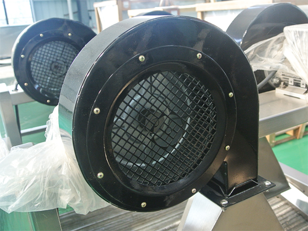 物料通過網(wǎng)帶傳輸進(jìn)入,經(jīng)多次翻轉(zhuǎn),以實(shí)現(xiàn)物料的多面受風(fēng)及受風(fēng)的均勻性,通過離心風(fēng)機(jī)的高壓風(fēng)力將食品冷卻或?qū)⒈砻嫠执蹈?,風(fēng)嘴成風(fēng)刀狀,有效地提高了風(fēng)量壓力,使物料表面的水分在短時(shí)間內(nèi)吹走或蒸發(fā),便于儲(chǔ)藏或深加工。