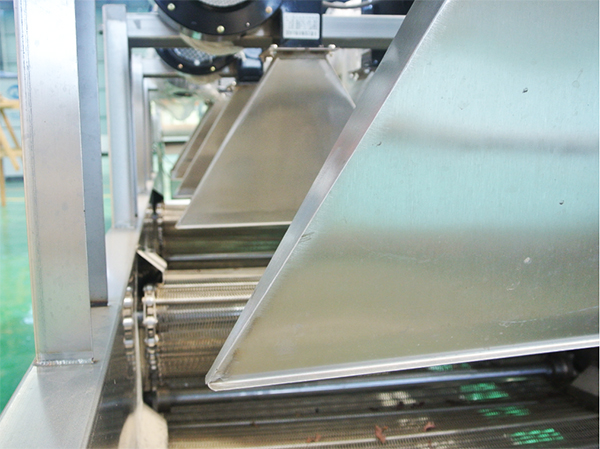 3、不銹鋼網(wǎng)罩:為防止產(chǎn)品過輕在風(fēng)干時(shí)被吹飛,在輸送帶上方都加有沖孔不銹鋼網(wǎng)罩,產(chǎn)品只會(huì)在里面翻轉(zhuǎn)而不會(huì)被吹出。防飛罩可以拆卸,方便清理。