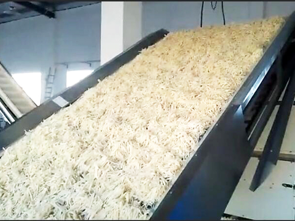 網(wǎng)帶式烘干機(jī)在我國已有幾十種物料的成功干燥案例,例如辣椒、蒜片、姜片、菊花、皇菊、山藥、金銀花、山楂、連翹、黃蜀葵、玉竹、地黃、蒲公英、馬齒莧、蓮子、百合、蓮子、白瓜子、蘿卜干、黨參、豆角、茄子、木耳、皇竹草、苜蓿草、秸稈、燕麥片、水稻、蒸谷米等。僅需調(diào)整網(wǎng)帶速度、鋪料厚度、干燥溫度等參數(shù)即可滿足多種物料的干燥需求。整條食品烘干設(shè)備生產(chǎn)線僅需3~5人即可輕松操作,改變了以往產(chǎn)量小、品質(zhì)差的狀況。