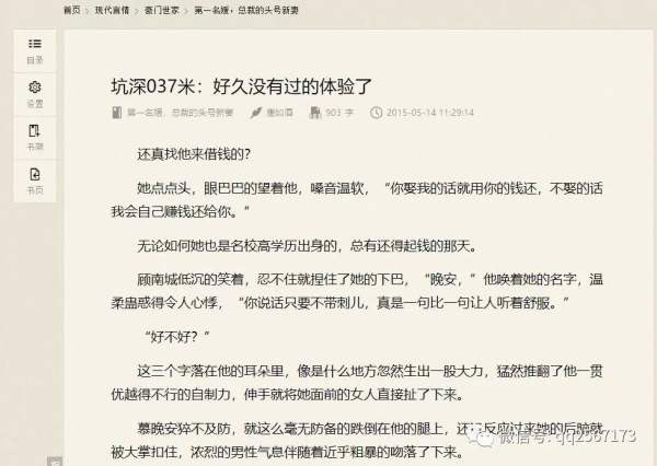 男人喜歡看什么樣的內容,這個不要我多說吧?找一些現代都市言情小說,很容易找到如上圖這樣類似的章節。 內容可以非常曖昧,但是一定不能“黃”,這個明白吧,這個是底線,如果傳播黃色小說的話,就要進橘子了。