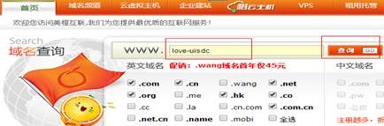 1、例如,在美橙互聯域名查詢頻道上輸入自己想要注冊的域名