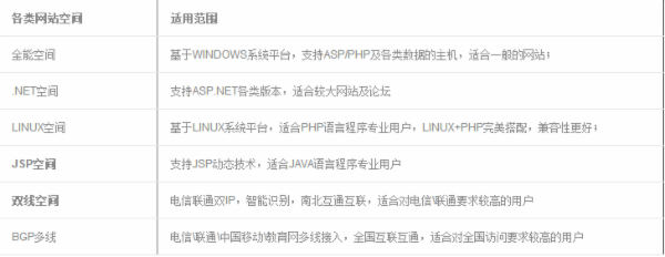 1、 根據網站腳本程序選擇功能匹配的空間(詳看:各類的網站空間及適用范圍)