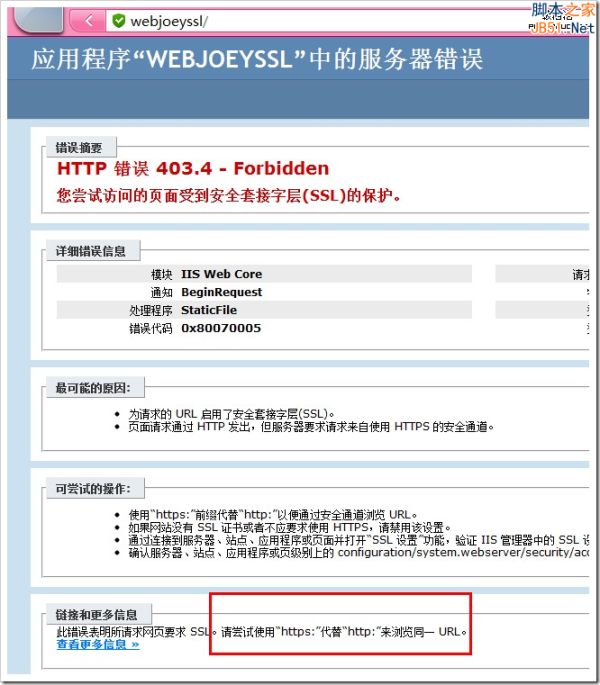 但是這樣會出現一點問題,你訪問http://webjoeyssl ,瀏覽器會報錯