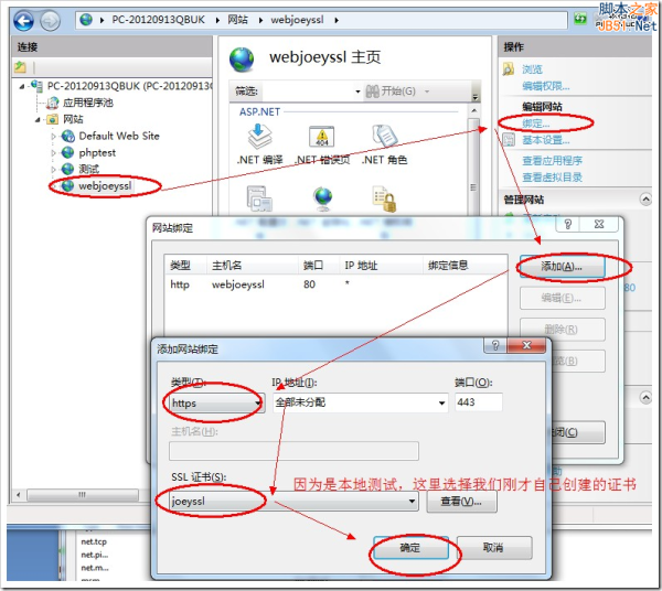 接下來,我們新建一個本地測試站點,并且綁定剛才我們創建的證書。
