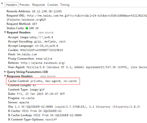 Cache-control: private 意味著這個文件對不同的用戶是不同的。只有用戶自己的瀏覽器能夠進(jìn)行緩存,公共的代理服務(wù)器不允許緩存。