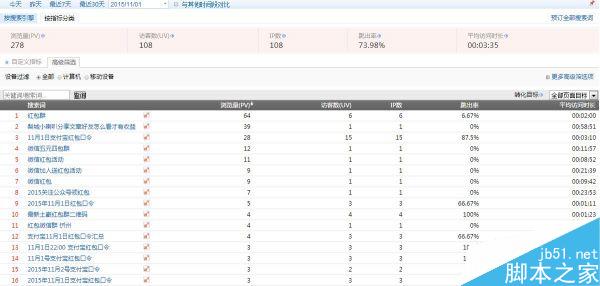 大家不要以為這是PS的哈,這都是11月2日微紅包的真實數據,再來看看來自百度統計的當日關鍵詞統計。
