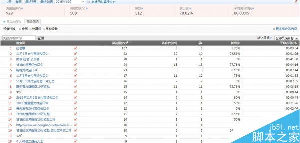 當日通過長尾關鍵詞搜索進入網站的人數是平時的4-5倍,下面這張圖是11月1日百度統計的關鍵詞統計數據。