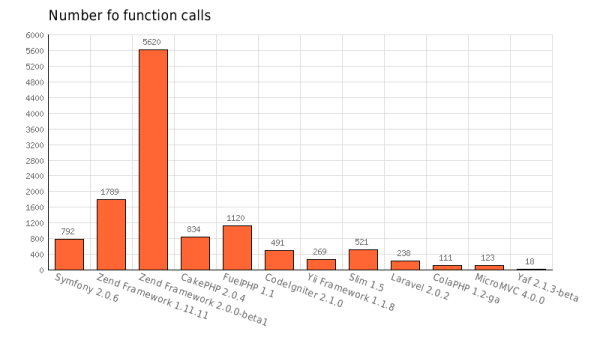5. 調用方法的數量(Facebook XHProf) 單個hello word頁面調用了多少方法,zend5620個方法,是不是太臃腫了。
