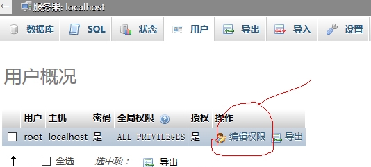 我們可以看到上圖,找到我們需要修改的ROOT用戶,然后去編輯。今天這位朋友本來不想修改這個用戶信息的,他想修改一個網站數據庫的,導致搞錯了。