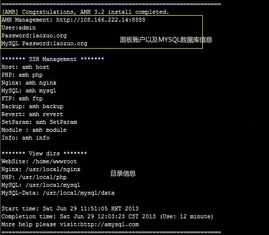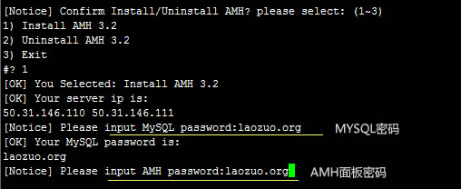 回車后,需要我們輸入AMH管理面板的登陸密碼,繼續回車后就是自動安裝。