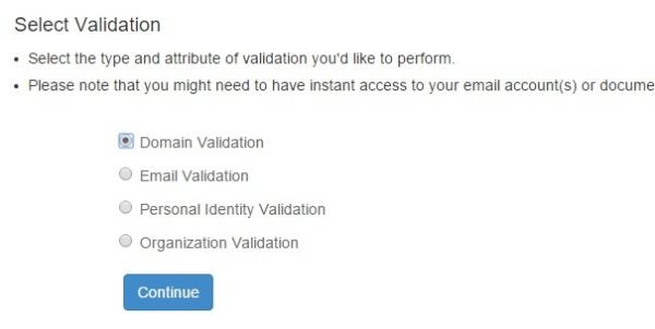 我們選擇使用到網站中肯定需要對需要用的域名進行驗證,要不就亂套了。看到上圖所示點擊"Domain Validation"進行域名驗證。