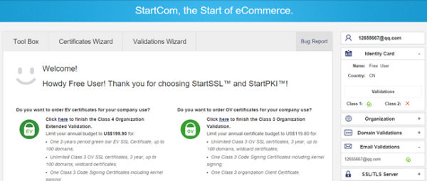 第三、申請免費StartSSL證書 StartSSL商家也不是完全提供免費SSL證書的,也有提供付費證書,畢竟人家也是要維系收支的,如果以后我們有錢了,也去購買人家的付費SSL使用。