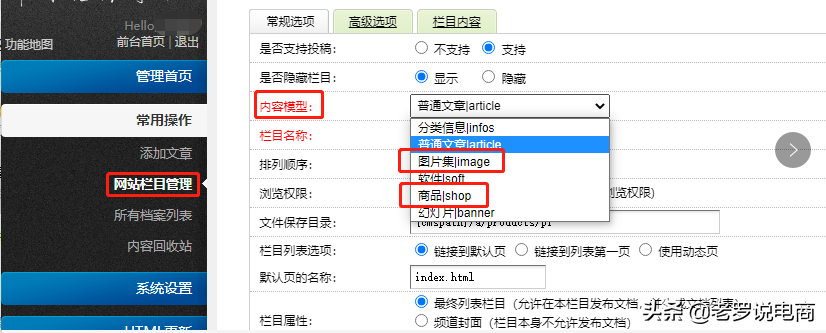 (織夢CMS內容模型類型圖)