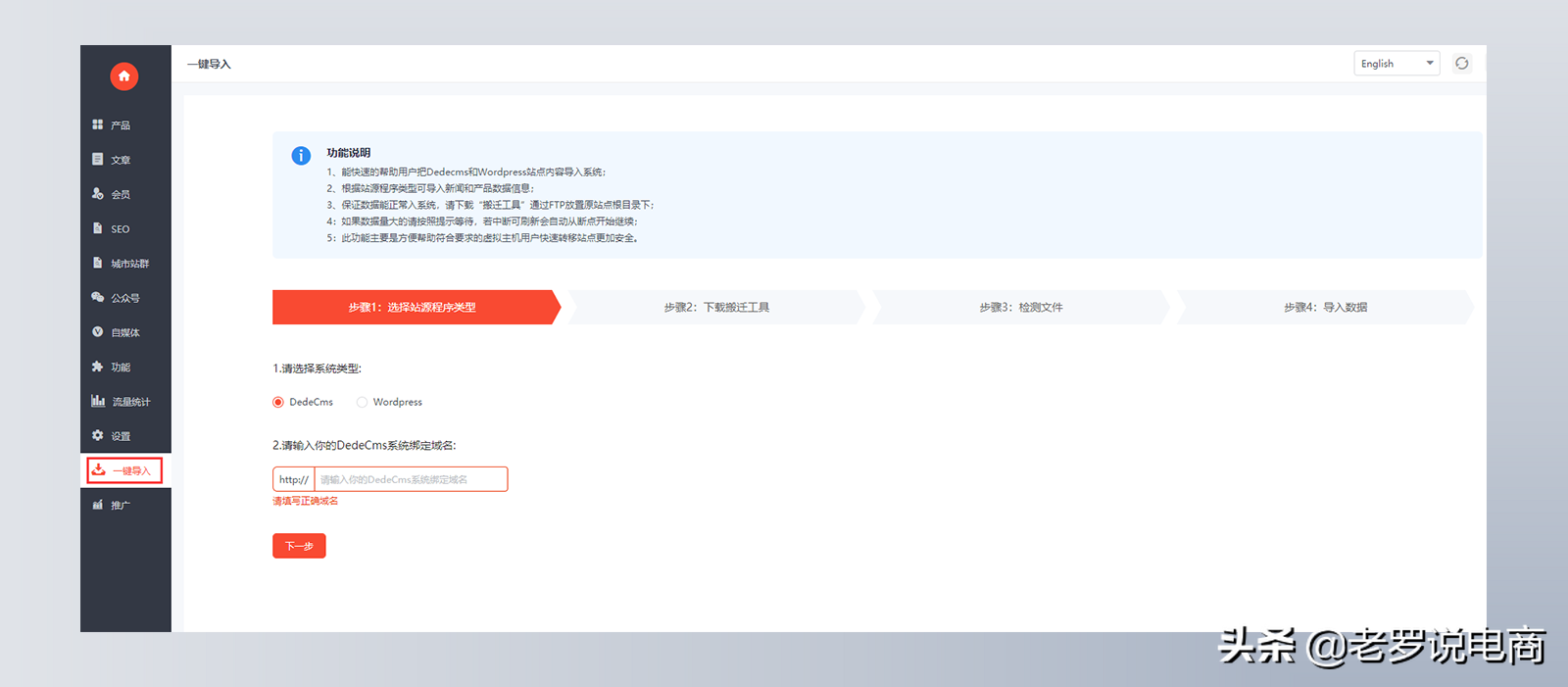 能快速的幫助用戶把Dedecms和Wordpress站點內容導入系統。