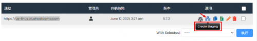 D)從需要暫存站點的列表中選擇 WordPress 安裝,然后單擊所選安裝的“Create Staging”圖標