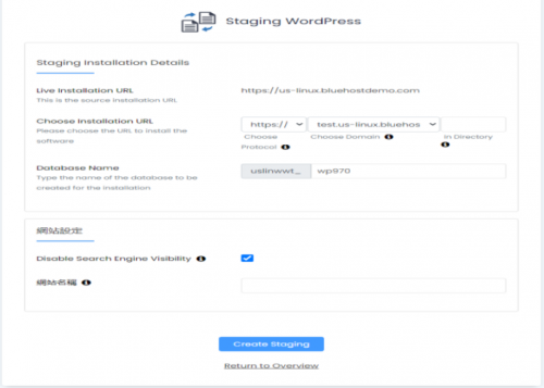 讓我們看看如何創建一個 WordPress stage網站。在本文中,我們使用 us-linux.bluehostdemo.com 作為我們的實時域,將 test.us-linux.bluehostdemo.com 作為實時域的Stage網站的副本。