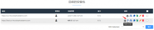 3.3)單擊您已使用并希望使其上線的登臺網站附近的“Push to Live”圖標。