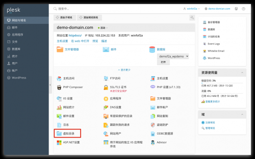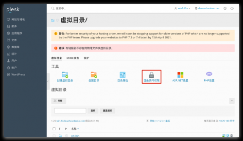 找到對應需要修改讀寫權限的域名,并點擊“虛擬目錄”