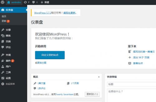 至此,我們用Windows虛擬主機安裝WordPress網站已經完成,登錄后臺看是否一樣。