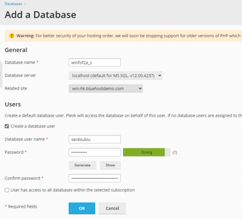 7、填入剛剛創建的數據庫用戶名,數據庫密碼