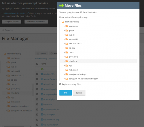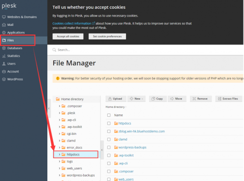 3、將解壓好的文件都移動到httpdocs文件夾下;