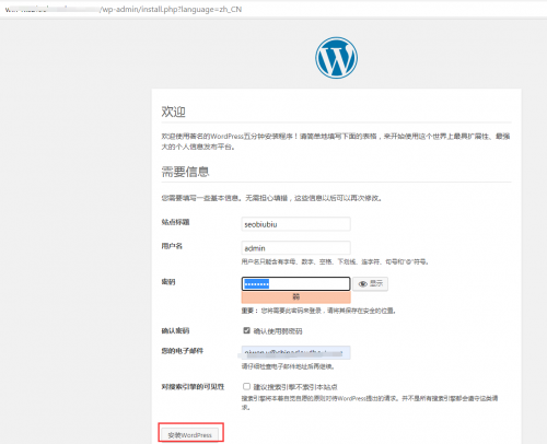 從Windows安裝的整個過程來看,我們發現流程與Linux相差不大,沒有給到目錄權限就需要手動創建wp-confing.php文件。到上傳網站,點擊安裝內容都是一致的。