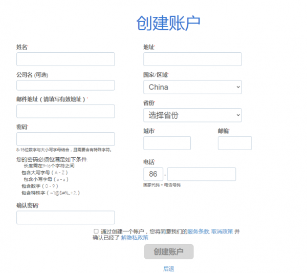 這里點擊繼續付款,進入注冊頁面,這個需要注意,所有的注冊信息是需要填英文的,否則是通不過的,如下圖;