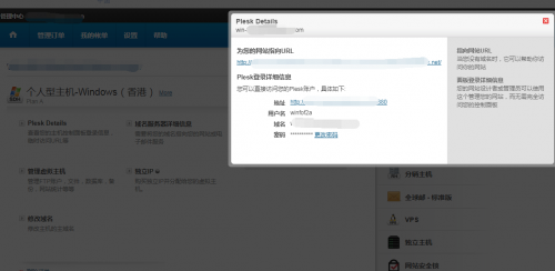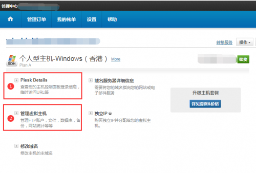 3、在管理頁面,可以直接點擊“管理虛擬主機”進入Plesk控制面板,或者點擊Plesk Details,再點擊控制面板的鏈接,如下圖;