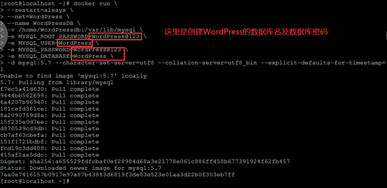 2、創(chuàng)建Wordpress數(shù)據(jù)庫(kù)容器,復(fù)制以下代碼即可