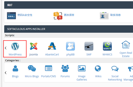 進入cpanel控制面板之后,拉到最底部,找到Wordpress,并點擊進入