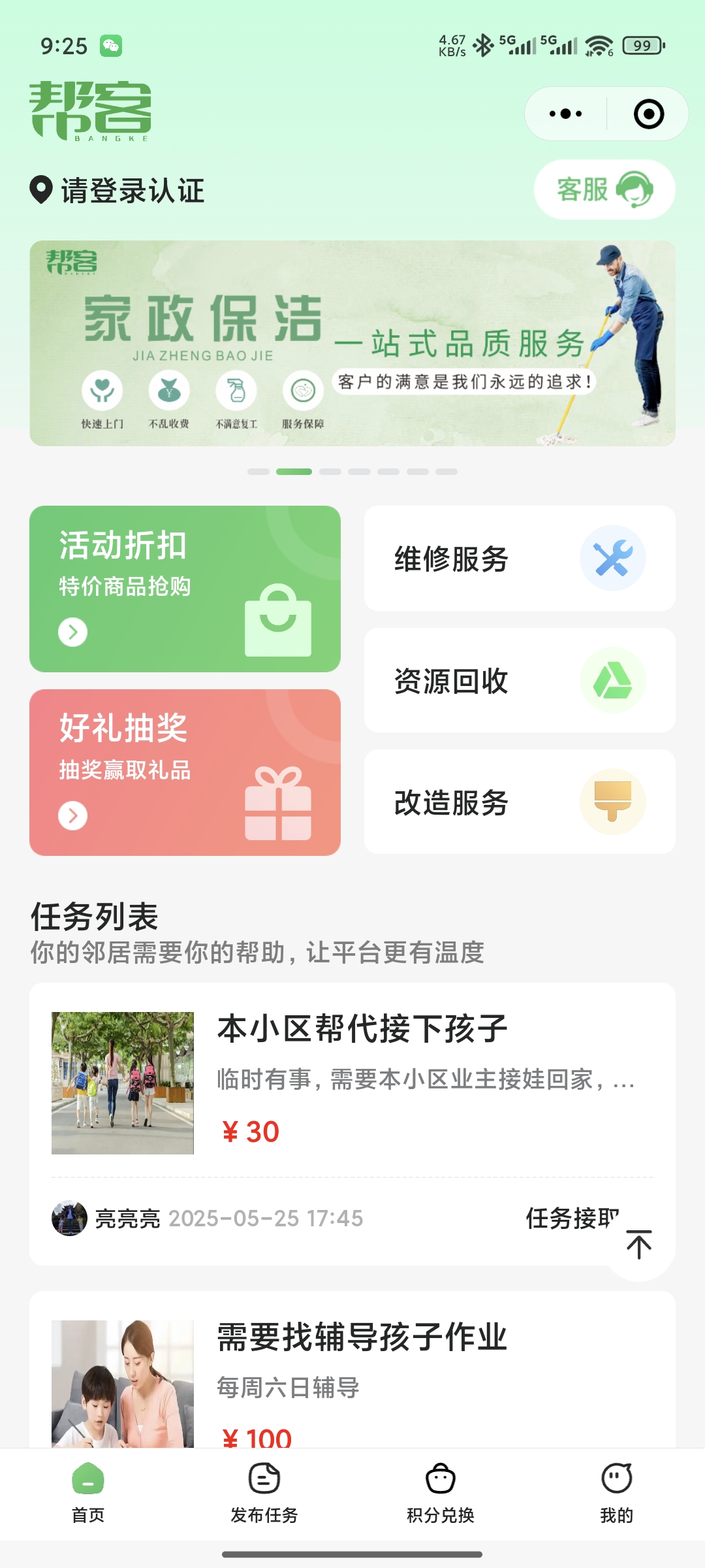 針對附近小區(qū)做內(nèi)容運營,用戶可以通過小程序發(fā)布任務(wù),附近小區(qū)的注冊人員可以通過小程序接取任務(wù),接取任務(wù)后能獲得一定的傭金。小程序主要功能:注冊、登錄、認證、分銷、商城、積分、任務(wù)、核銷等。