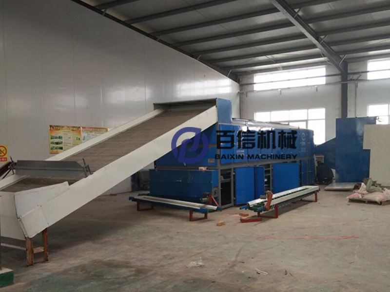 將需要干燥的物料放置在 輸送帶上,經(jīng)均料器后物料被平鋪在網(wǎng)帶上,輸送至烘干機內(nèi)部,在烘干機箱體內(nèi)呈“s"型逐層翻轉(zhuǎn)、下落,烘干后的水稻從出料口流出。熱風爐為干燥設(shè)備提供干燥介質(zhì)--熱風,按所用燃料不同可選擇熱泵、燃煤、燃油、燃氣等不同形式的爐子;網(wǎng)帶式烘干機是干燥設(shè)備的主體,由 機體和多層輸送帶組成;電控系統(tǒng)控制著整個設(shè)備的啟動、運轉(zhuǎn)與停止。在其他輔助部件的配合下,完成上料、干燥與出料等工序,實現(xiàn)被加工物料的干燥加 工。