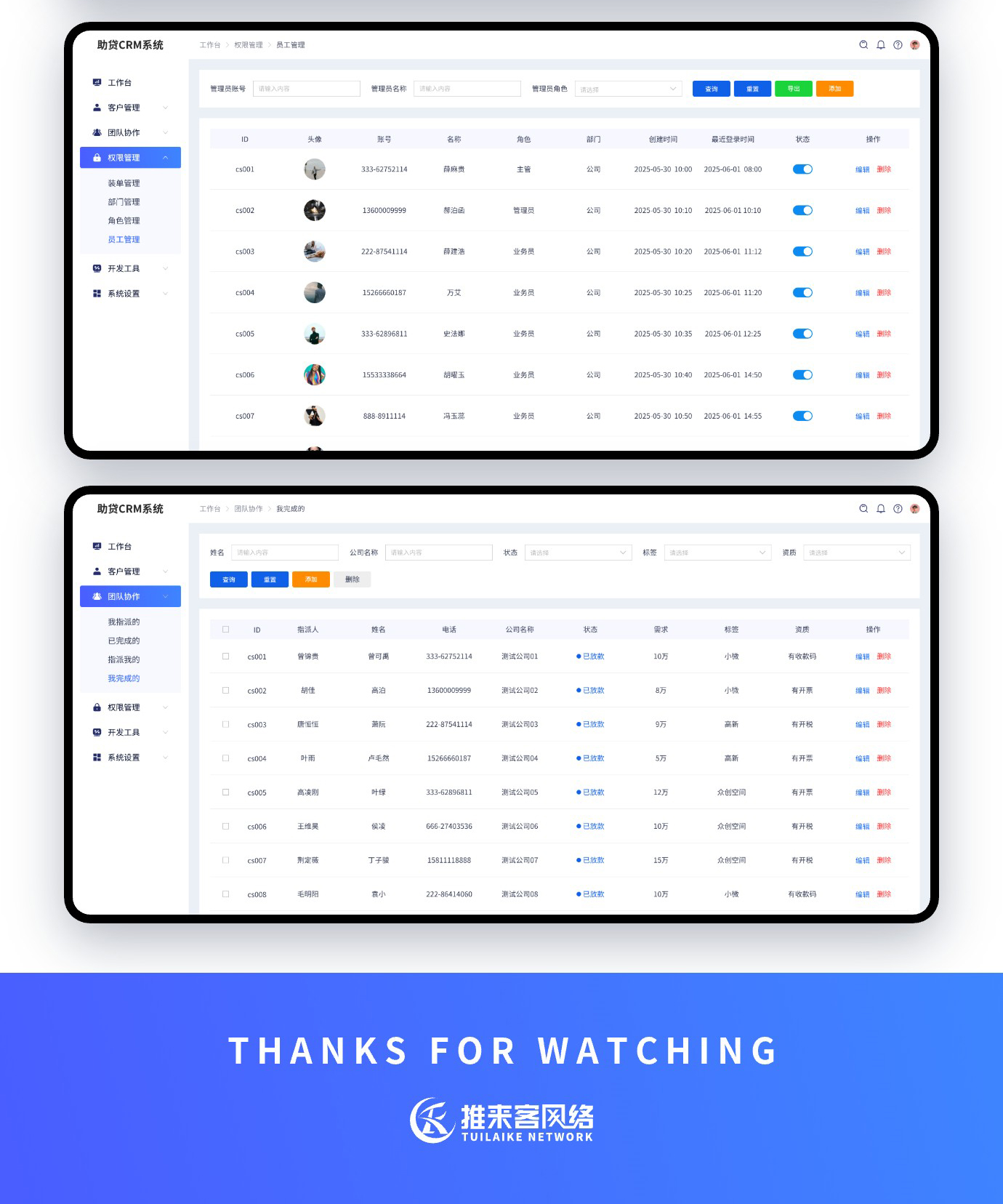 這是我們幫河南一家客戶開發(fā)的助貸CRM管理系統(tǒng),客戶本來是想找成品部署的,但是找了一圈都沒有合適的,因?yàn)楣δ苄枨蟛皇浅R?guī)的,必須要根據(jù)他們自身邏輯定制開發(fā)。但是問了不下10家,都是在1.5萬以上,我們是報價最便宜的。但是可會又擔(dān)心價格便宜了做不好,所以雙方確定預(yù)留50%的尾款,做完了滿意在單獨(dú)發(fā)紅包,不滿意也沒什么損失。
