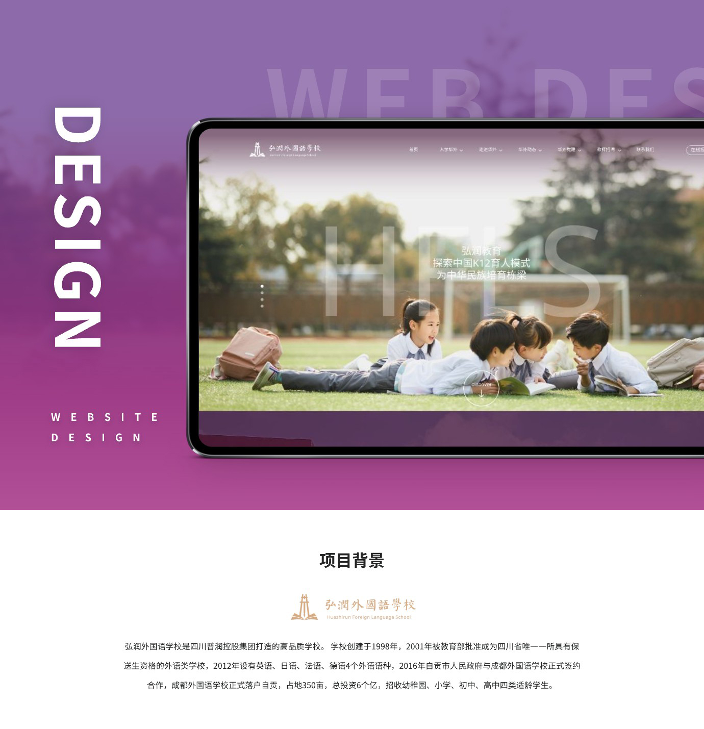 自貢弘潤外國語學校創辦于2017年9月,是自貢市第一所涵蓋幼稚園、小學、初中、高中的全日制民辦學校。學校在沉淀原自貢成外教育教學精髓的基礎上,與四川輕化工大學、香港優才(楊殷有娣)書院等院校緊密合作,創新融合發展本校特色課程,旨在建構大美育辦學特色,培養對社會、對國家有貢獻的杰出人才。學校將開設香港DSE課程,助力學生逐夢世界名校。