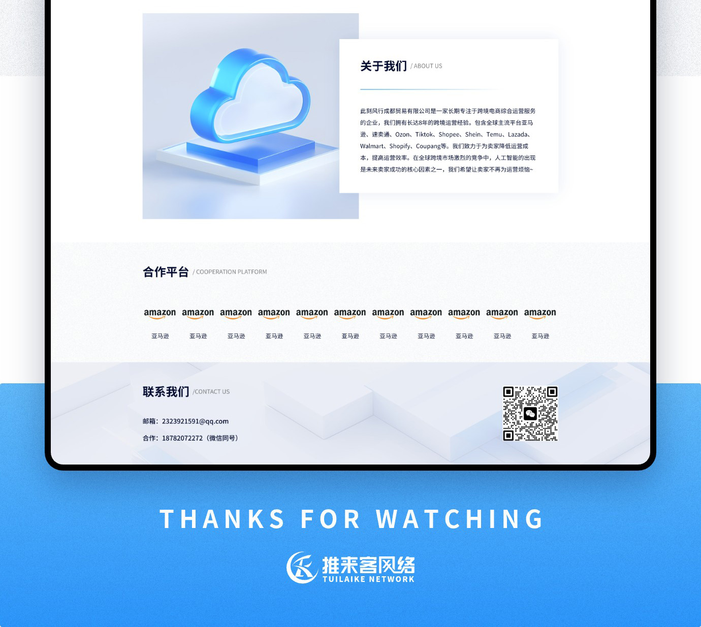 公司是一家長期專注于跨境電商綜合運營服務的企業,我們擁有長達8年的跨境運營經驗。包含全球主流平臺亞馬遜、速賣通、Ozon、Tiktok、Shopee、Shein、Temu、Lazada、Walmart、Shopify、Coupang等。我們致力于為賣家降低運營成本,提高運營效率。在全球跨境市場激烈的競爭中,人工智能的出現是未來賣家成功的核心因素之一,我們希望讓賣家不再為運營煩惱。